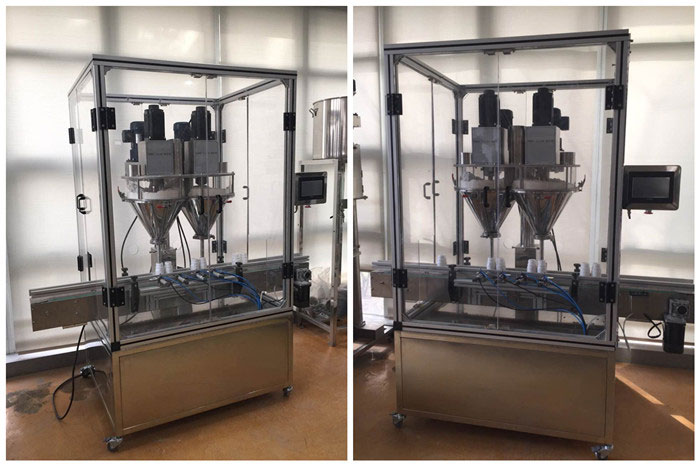 星火雙頭自動粉劑灌裝機(jī)外觀以及灌裝展示: