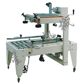 該機(jī)一般用于箱體高度變化較小產(chǎn)品的自動封箱流水線上,箱體在經(jīng)過前端工序操作后傳人此高紙箱折角封箱機(jī)中,由機(jī)器的PLC控制中心根據(jù)所要封箱的物品對整機(jī)的高度做精卻調(diào)整,然后進(jìn)行封箱操作。