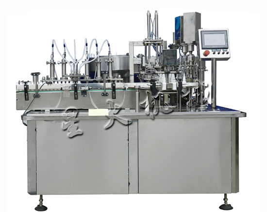 產(chǎn)品名稱:小瓶液體自動(dòng)灌裝旋蓋貼標(biāo)一體機(jī)