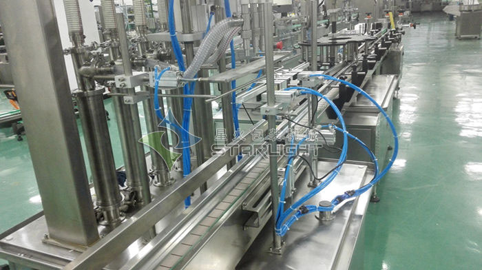 6、廣泛適用于油脂類物料(如橄欖油等粘性比較大的物料)的生產(chǎn)與分裝行業(yè),可連續(xù)自動運行灌裝。機器設(shè)計緊湊合理、外形簡潔美觀,灌裝量調(diào)節(jié)方便。