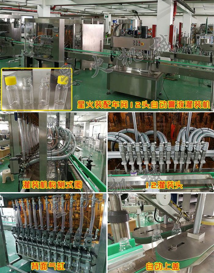 1、采用活塞式12頭伸入灌裝形式,灌裝不泄露;